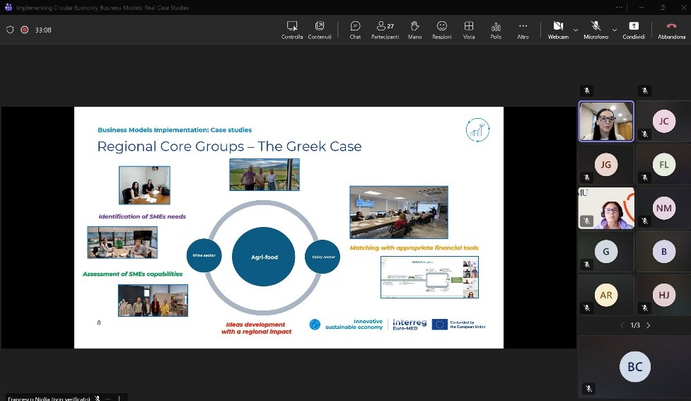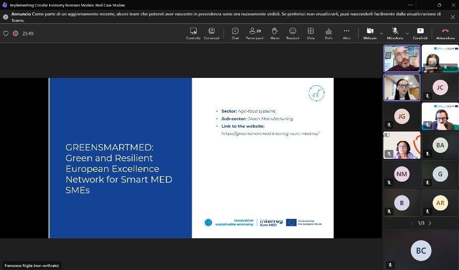 On December 10th, 2025, the GREENSMARTMED project was presented in the “Business Models Implementation: Case Studies” online interactive session. Organized as part of the Innovative Sustainable Economy (ISE) Mission, the training focused on bridging the gap between circular economy theory and the financial “bankability” of Mediterranean projects.